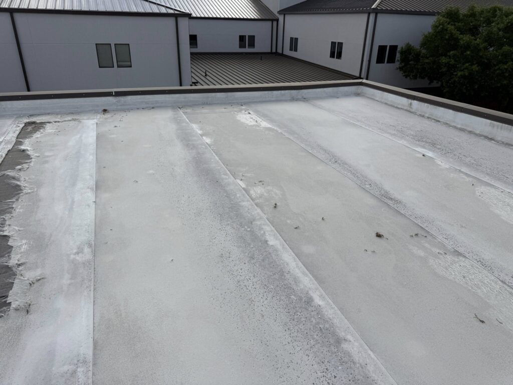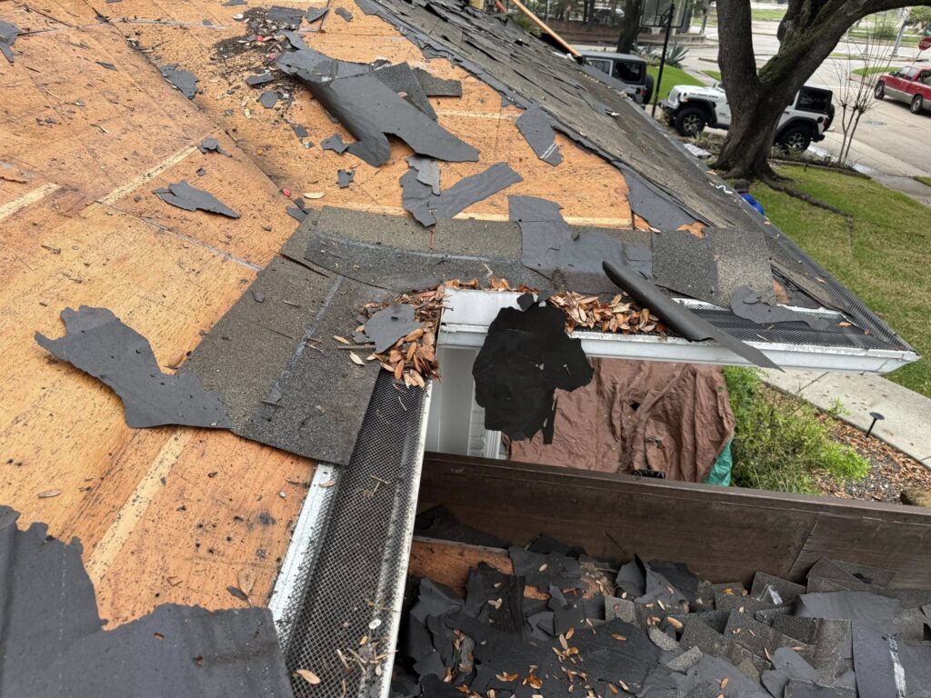 In Texas, we most frequently find sun-damaged shingles, rusted flashing, hail “bruises,” and clogged gutter systems.
